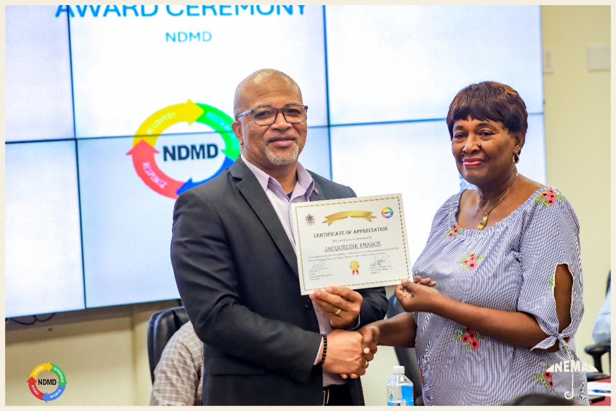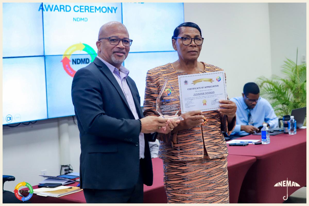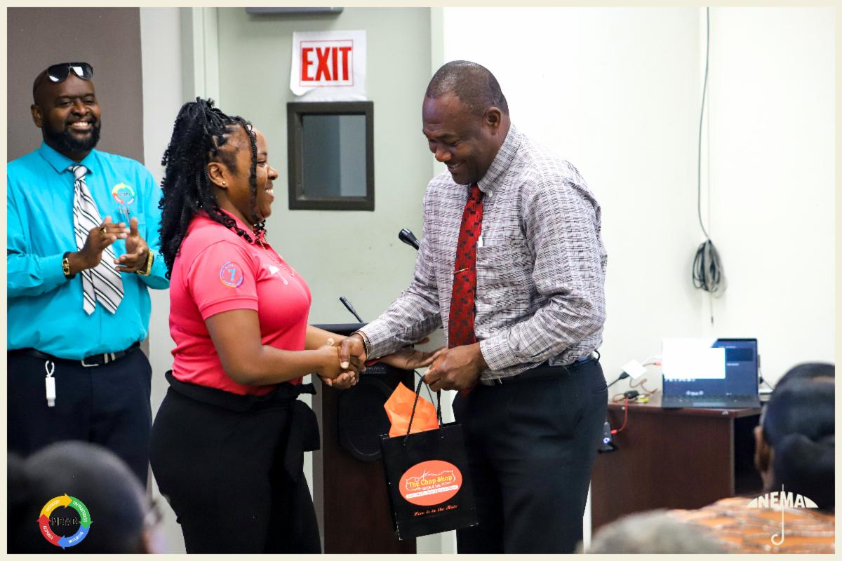 A highlight of the event was a special presentation honoring Pastor Jennifer Weekes for over 34 years of dedicated volunteer service in disaster management. As former District Chairperson for St. Thomas Parish, Pastor Weekes was recognized for her leadership in shelter management, community preparedness, and emergency response; contributions that have significantly strengthened Nevis’ resilience.