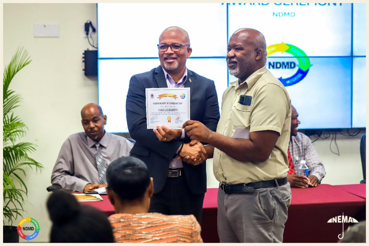 Delivering the featured address, Honourable Spencer Brand, Minister responsible for Disaster Management, commended newly appointed District Chairs and long-serving volunteers for their steadfast commitment to public service. He underscored preparedness, response, and recovery as the pillars of effective disaster management and reaffirmed the Government of Nevis’ continued support for NDMD and its volunteer network.