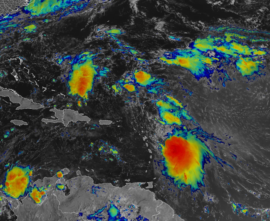 BASED UPON THE LATEST OBSERVATION AND ANALYSIS, THE CORE OF JERRY IS EXPECTED TO BE NEAR OR TO THE NORTH OF THE NORTHERN LEEWARD ISLANDS LATER TODAY; INTO TOMORROW FRIDAY; CAUSING GUSTY CONDITIONS MAINLY IN SHOWERS. RAINFALL TOTALS OF UP TO 2 – 4 INCHES ARE POSSIBLE DURING THE PASSAGE OF JERRY WHICH COULD CAUSE FLOODING MAINLY IN LOW LYING AND FLOOD PRONE AREAS.